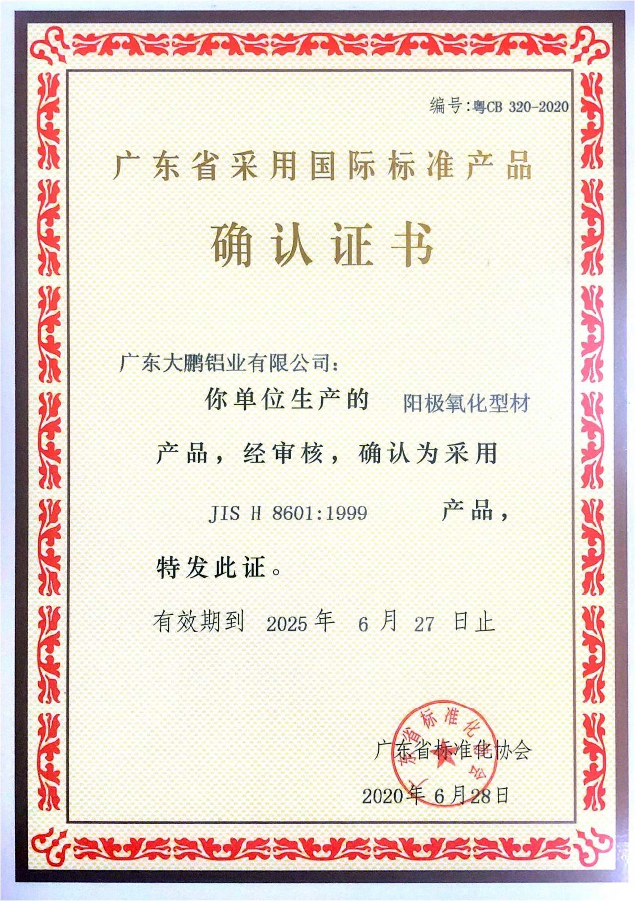 • 喜訊!廣東大鵬鋁業(yè)有限公司已八年榮獲“廣東省守合同重信用企業(yè)”榮譽稱號